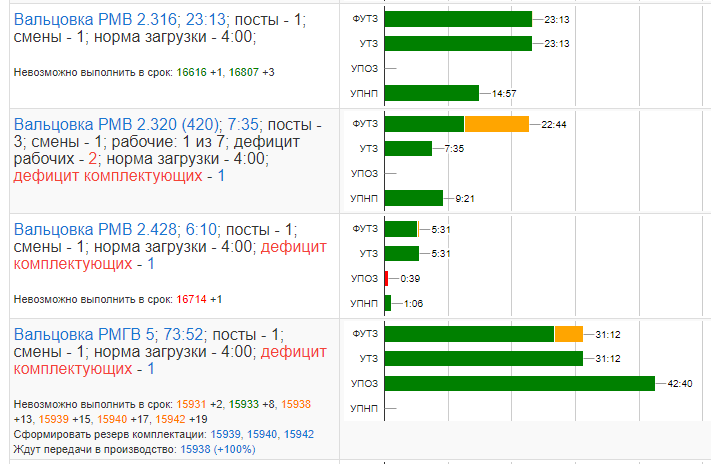 • Фактическая удельная текущая загрузка согласно выданным и незакрытым заказам, деленная на фактическое количество работающих во всех сменах на постах