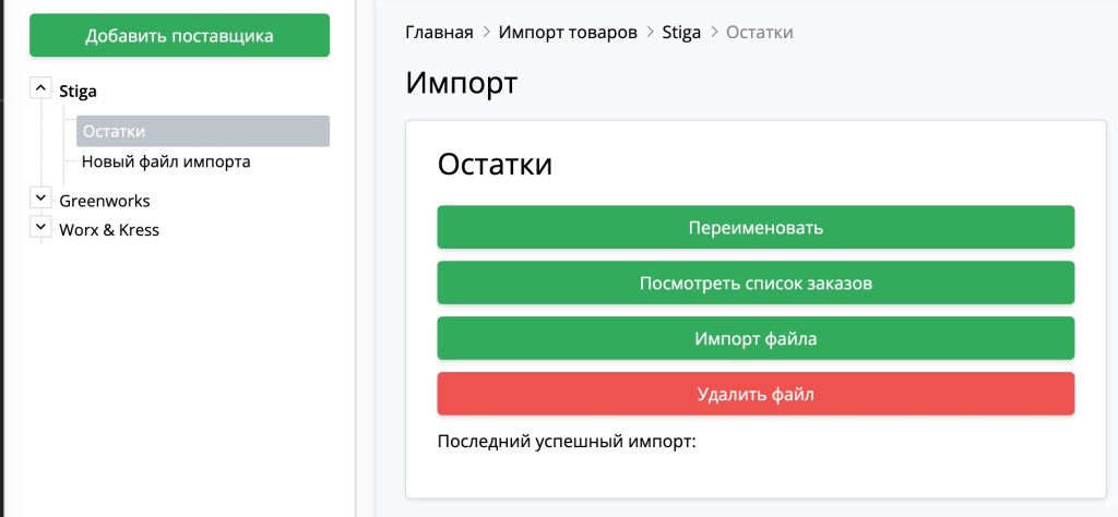 Именно поэтому наша компания разработала функционал в виде модуля импорта товаров. Модуль импортирует информацию о товарах от поставщика в предварительный реестр товаров для импорта. Источником для импорта может быть файл Excel, файл YML, ссылка на API поставщика или промежуточная база данных. После того как производится настройка импорта и сам импорт, задача менеджера — связать товар поставщика с товаром в рабочем каталоге дистрибьютора. Критериями связи могут быть артикул поставщика, артикул производителя, составной индекс в виде индикатора поставщика и артикула поставщика, или же идентификатора поставщика и артикула производителя.