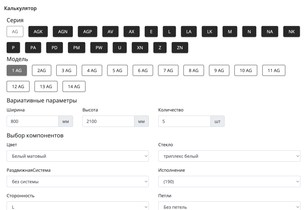В результате такой подготовительной работы в системе Завод365 представитель дилера может в считанные секунды выбрать серию, модель, указать значения вариативных параметров (ширина, высота), выбрать нужные опции, и, нажав кнопку “Рассчитать”, получить дилерскую и рекомендованную розничную цены.