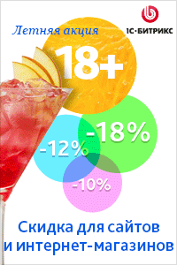 Акция «18+» действительна для заказов, оплаченных с 1 по 31 августа 2013 года. Скидки действуют на территории СНГ. Специальное предложение на решения в Маркетплейс распространяется только для покупателей «1С-Битрикс: Управление сайтом» в России и Украине.