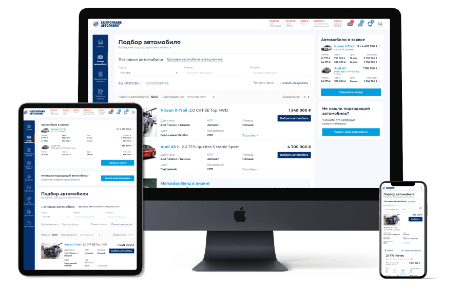 Летом 2021 года совместно с сотрудниками компании мы приступили к реализации новой версии личного кабинета клиента компании. Сотрудники Газпромбанк Автолизинга провели огромную работу по выстраиванию бизнес-процессов компании для обеспечения клиентам компании максимального удобства и наибольшей скорости обслуживания. Также компанией были разработаны интерфейсы, максимально отражающие текущее состояние бизнес-процесса оформления заявки на лизинг.