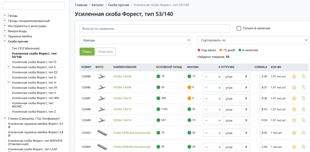 Клиент не может приехать к Вам на грузовике и купить у вашей компании одну мебельную скобу. Более того, он не может купить у вас одну базовую единицу отгрузки, одну тысячу штук. В данном случае в системе оптовой торговли Дилер365 клиент может покупать скобу только коробками, упаковками или паллетами.