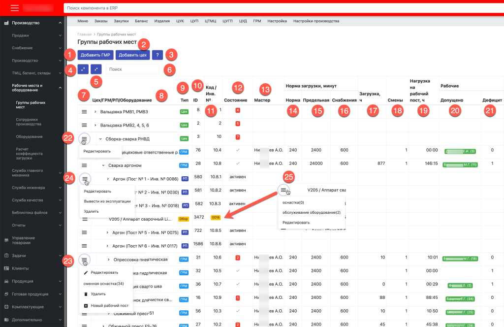 Полностью переработан раздел управления структурой производства в системе Завод365