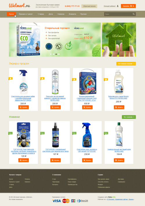 Заказчик нас выбрал как оптимального исполнителя в части разработки адаптивного интернет-магазина бытовой экологической химии. Большой опыт в создании адаптивных интернет-магазинов позволяет нам с уверенностью говорить о том, что заказчик получил качественный современный продукт, с которым комфортно вести бизнес.