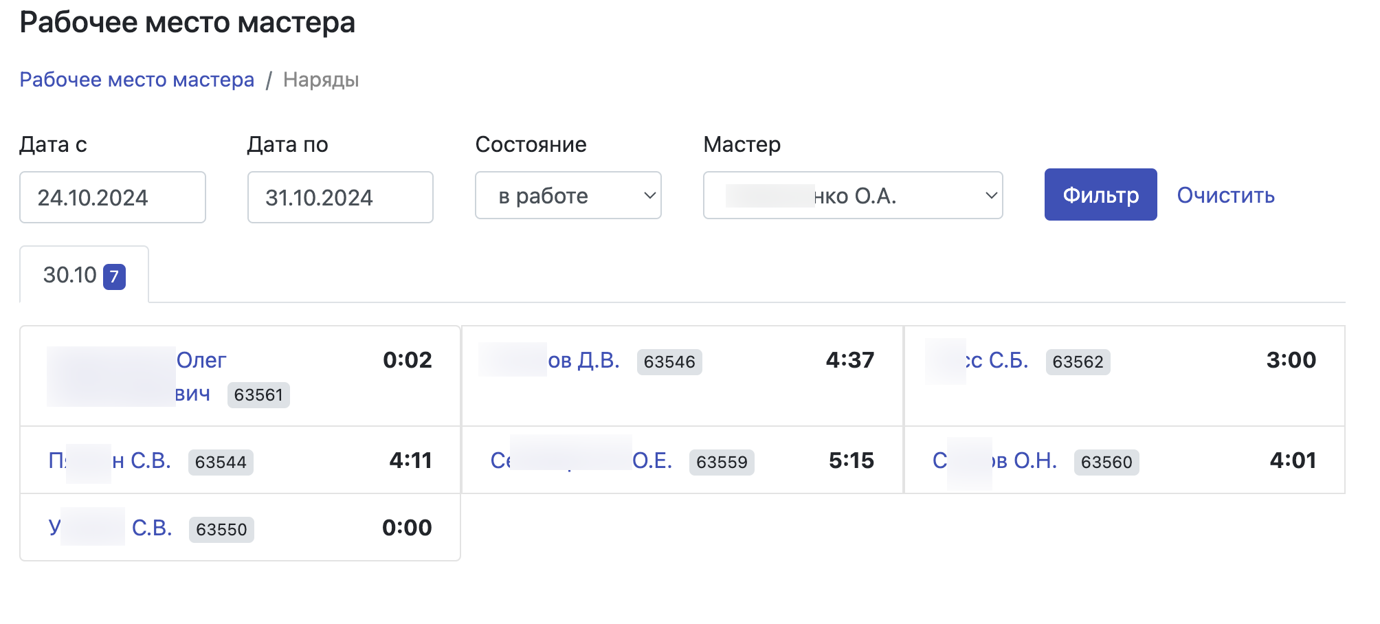 Блок переведен на новый интерфейс. Также введена процедура автоматического закрытия нарядов рабочих на конец текущего дня.