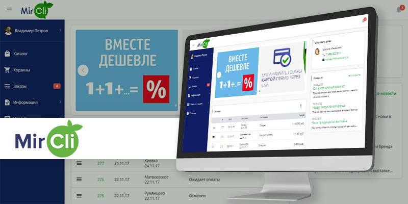 После согласования функциональных требований мы предложили компании реализовать проект на пакете “Бизнес” системы автоматизации оптовой торговли Дилер365. Отдельно решено было реализовать мобильное приложение MirCli для обеспечения доступа к личному кабинету дилера на платформах iOS и Android.