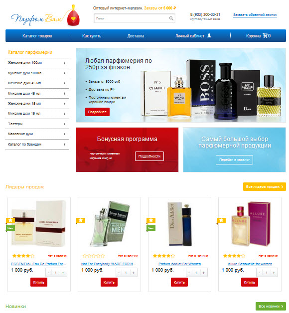 Недавно закончена работа над создание интернет-магазина parfumvam.ru. В наш век развития интернет-коммерции уже много написано об интернет-магазинах, о том, какими они должны быть, какие элементы сайта интернет-магазина делают его удобным и успешным.