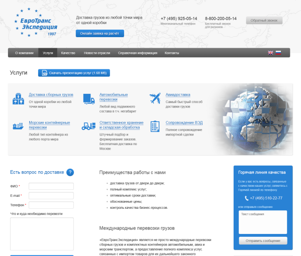К нам обратилось руководство компании «ЕвроТрансЭкспедиция», которая является крупным интегратором на рынке международные перевозок сборных грузов и комплектных контейнеров автомобильным, авиа и морским транспортом, а также предоставляет полный комплекс услуг, связанных с импортом товаров для их дальнейшего законного хозяйственного использования на территории страны импортера.