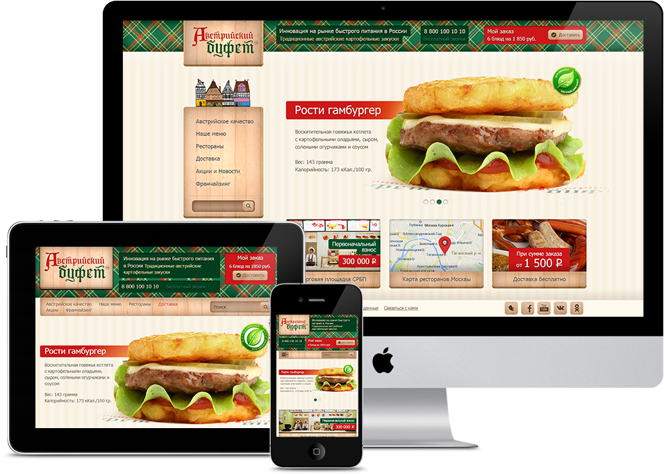 Для нового бренда быстрого питания «Австрийский буфет» нашей студией был разработан современный адаптивный сайт на платформе 1С-Битрикс с возможностью он-лайн заказа меню ресторана.