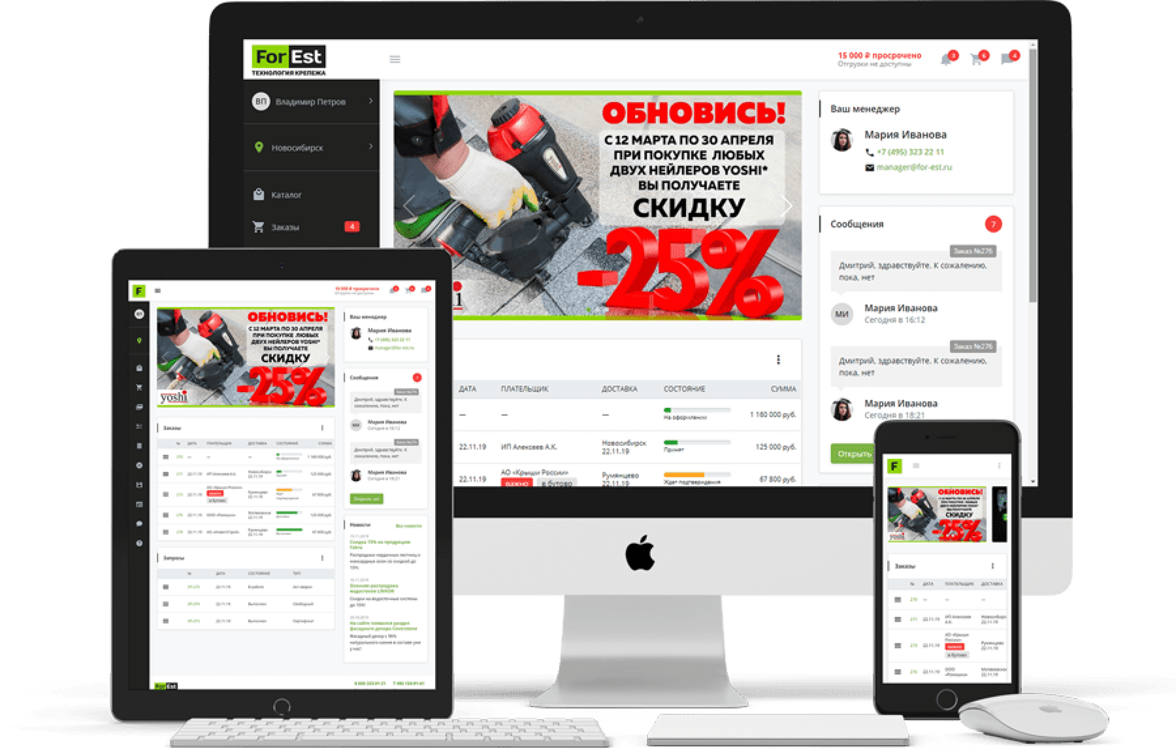 Дилер вашей компании работает 24/7 из любой точки мира в личном кабинете с каталогом товаров (остатки, цены дилера), заказами, доставками, рекламациями, обращениями, информационными и рекламными материалами, новостями и акциями, обучением, бонусами и каталогом вознаграждений, онлайн-чатом с менеджером.