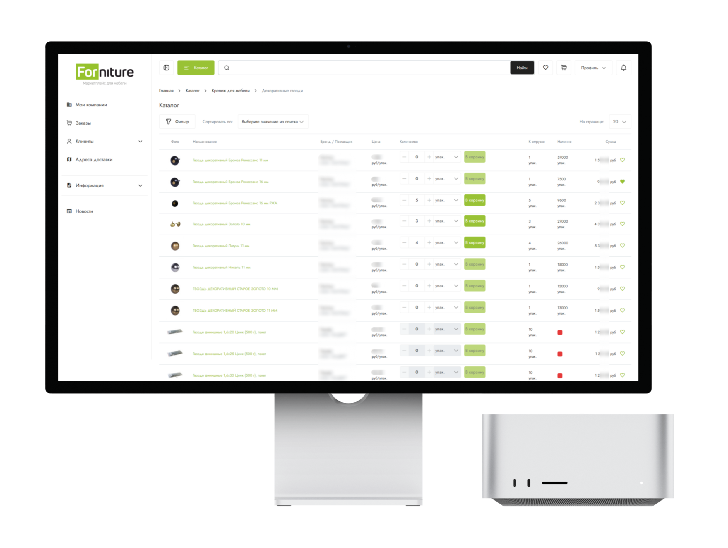 Получение цен на товары для партнера