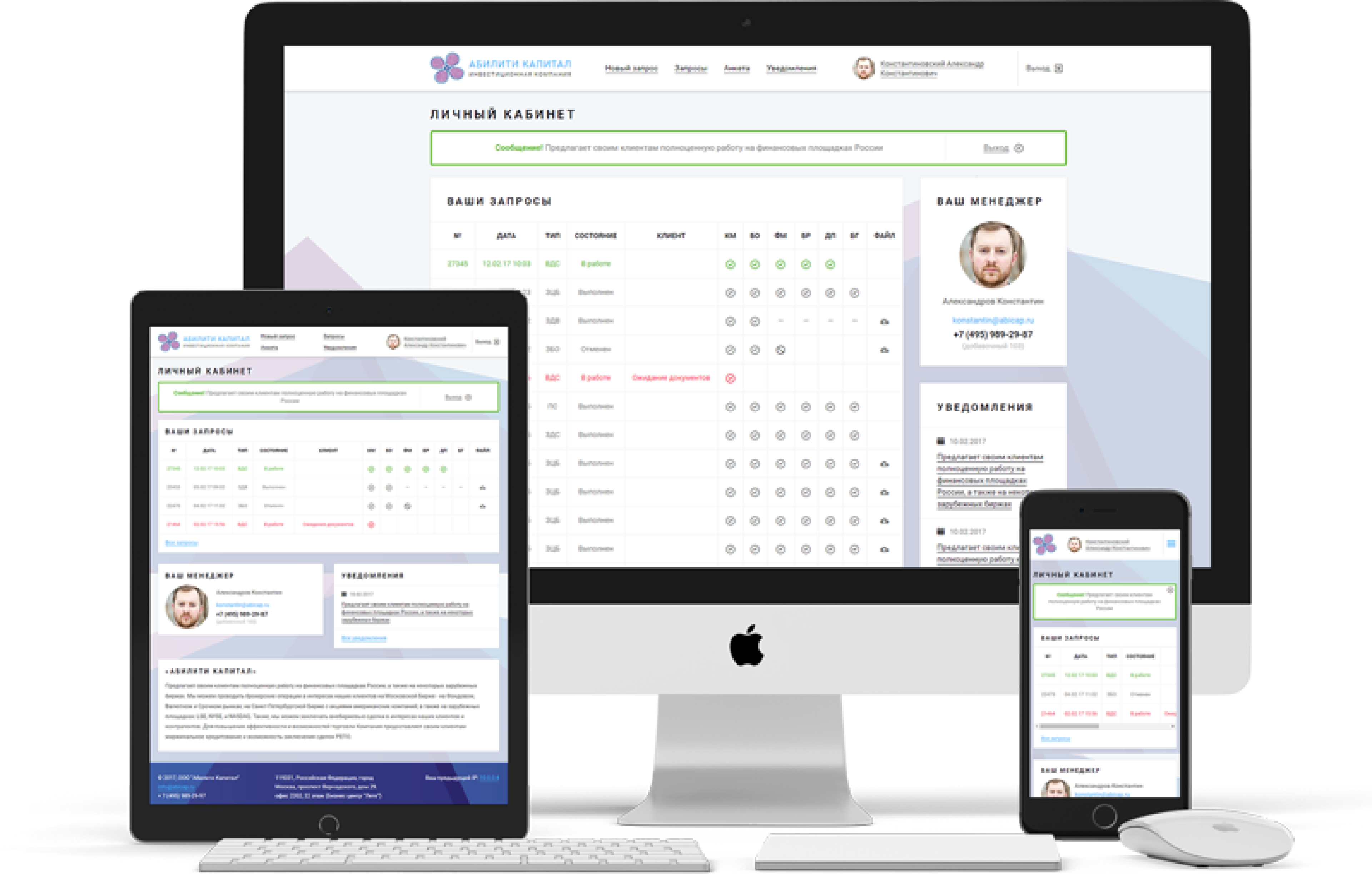 Адаптивность личного кабинета для работы на смарфоне и планшете позволяет делать это из любого места