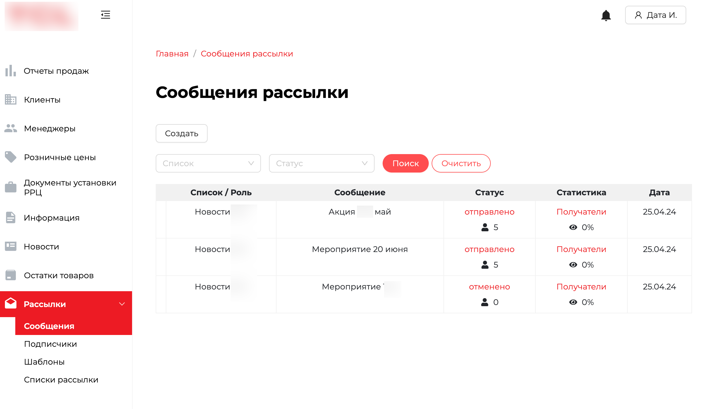 Отчеты продаж (SELL OUT), сводные отчеты продаж (PSI), импорт, экспорт