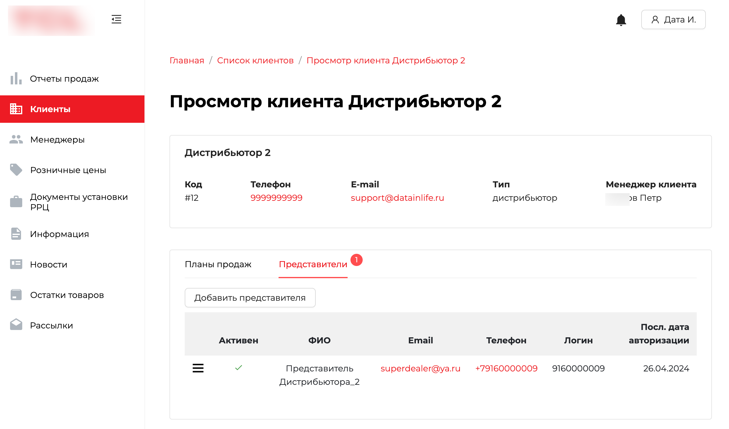 Менеджеры вендора, партнеры, регионы, категории, представители