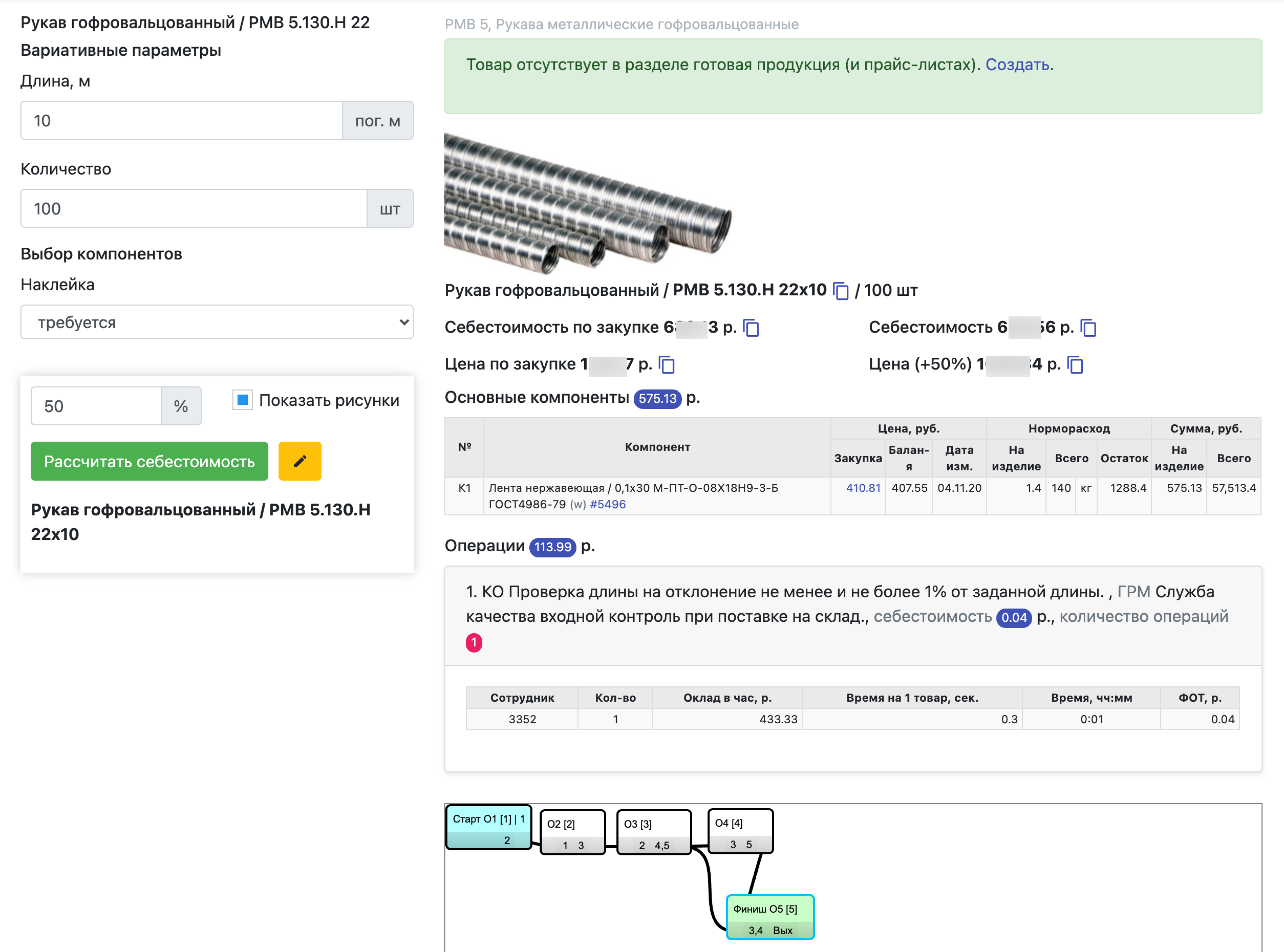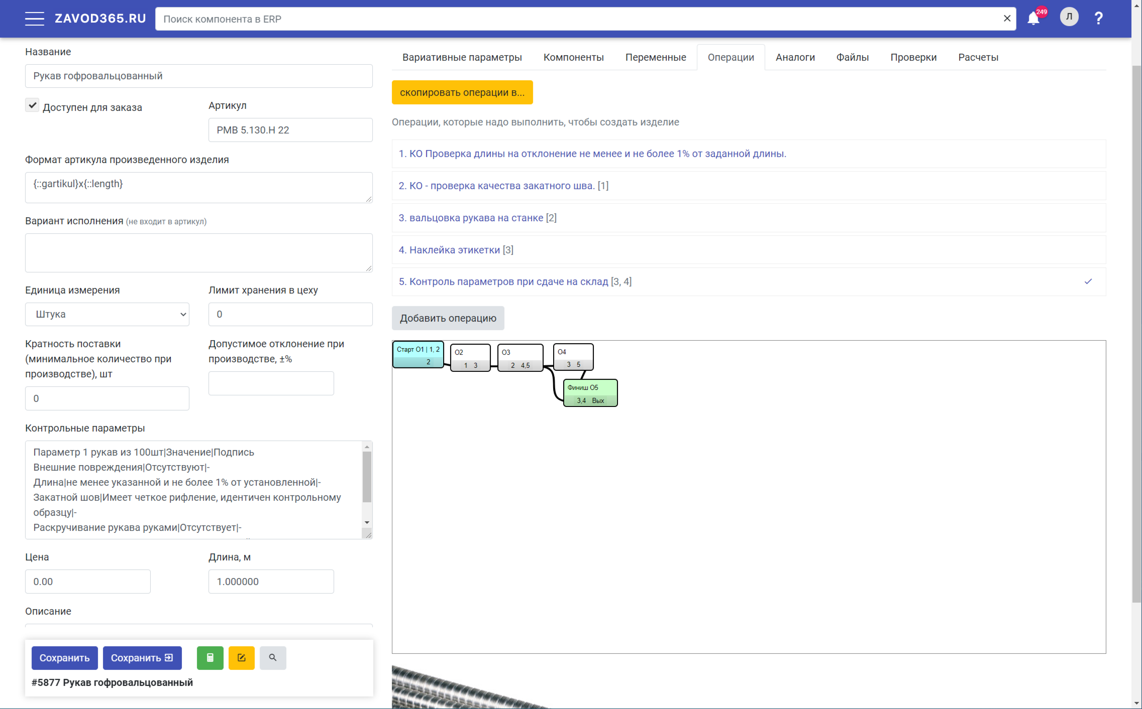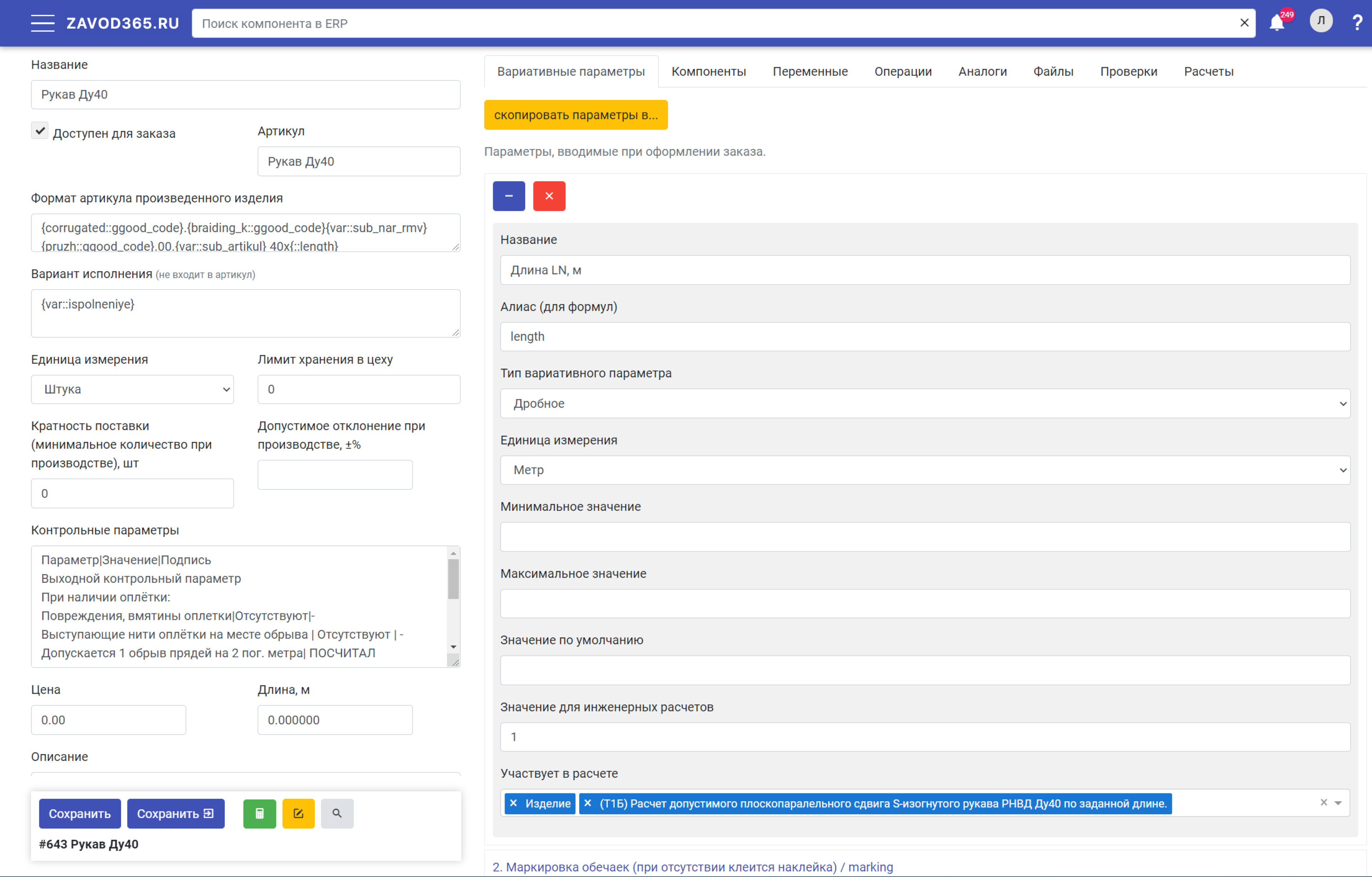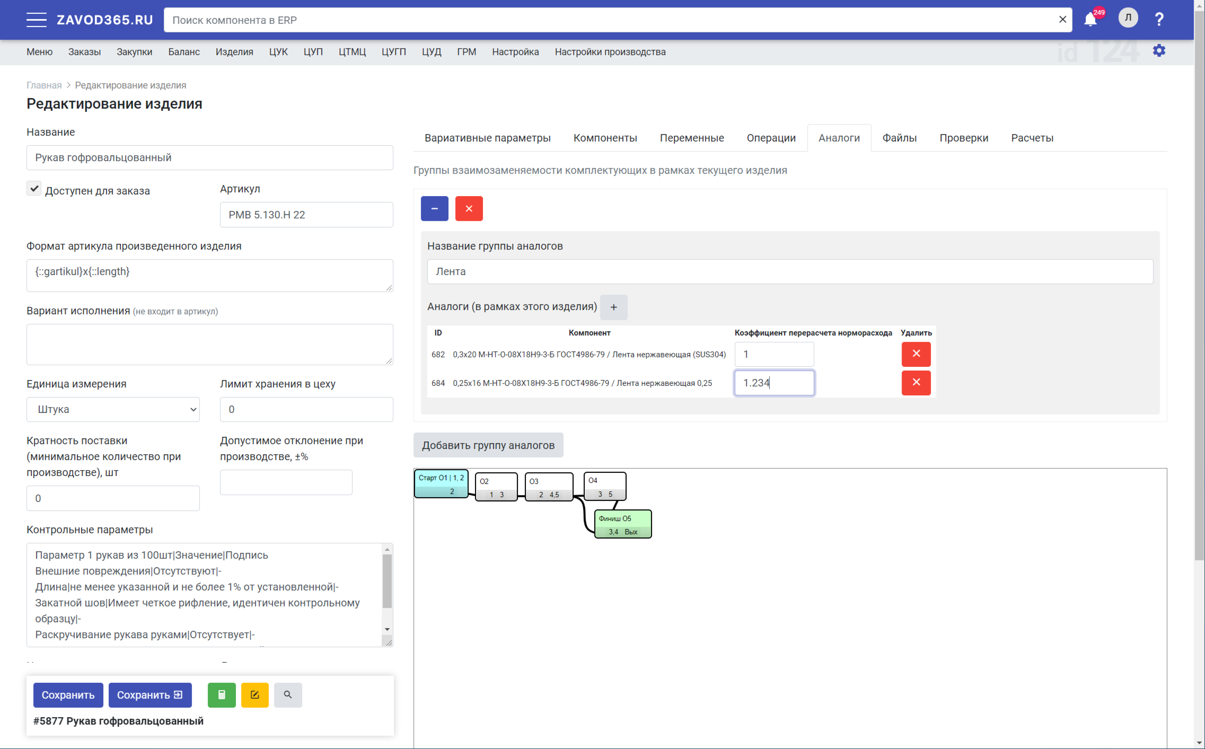 Вариативные параметры и опции, себестоимость компонентов и операций, проверки технологии производства