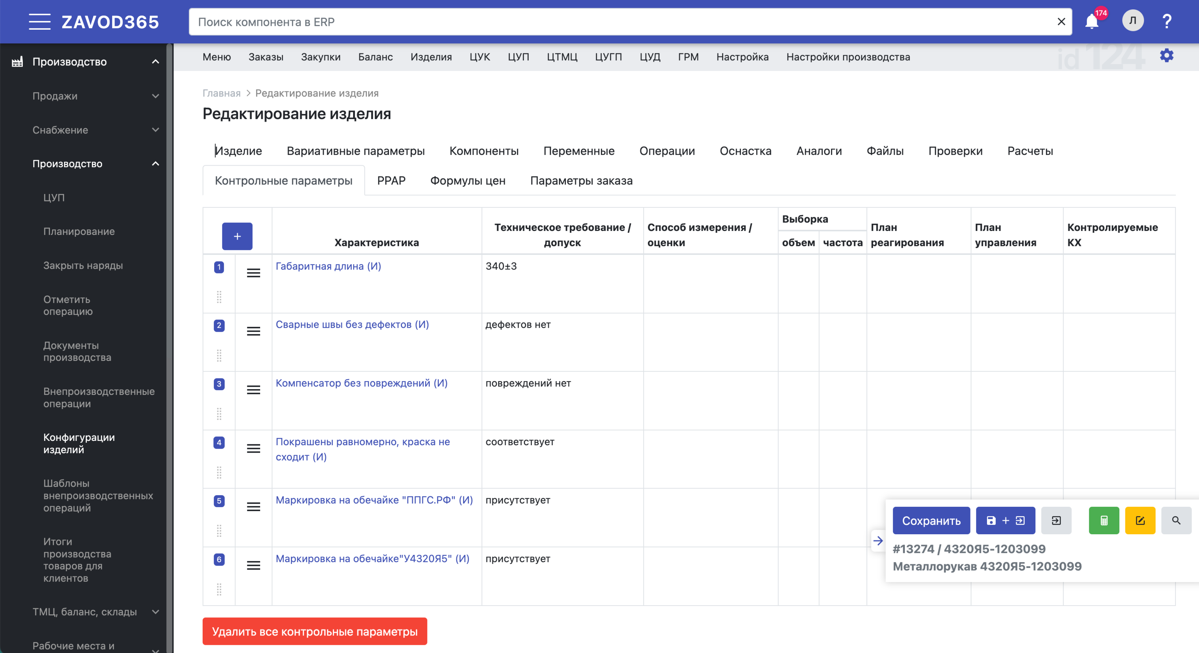 Читать далееВ системе управления производством Завод365 у инженера системы менеджмента качества появилась возможность прикреплять инструмент контроля или измерения к контрольному параметру операции в технологической карте изделия при просмотре производственного заказа