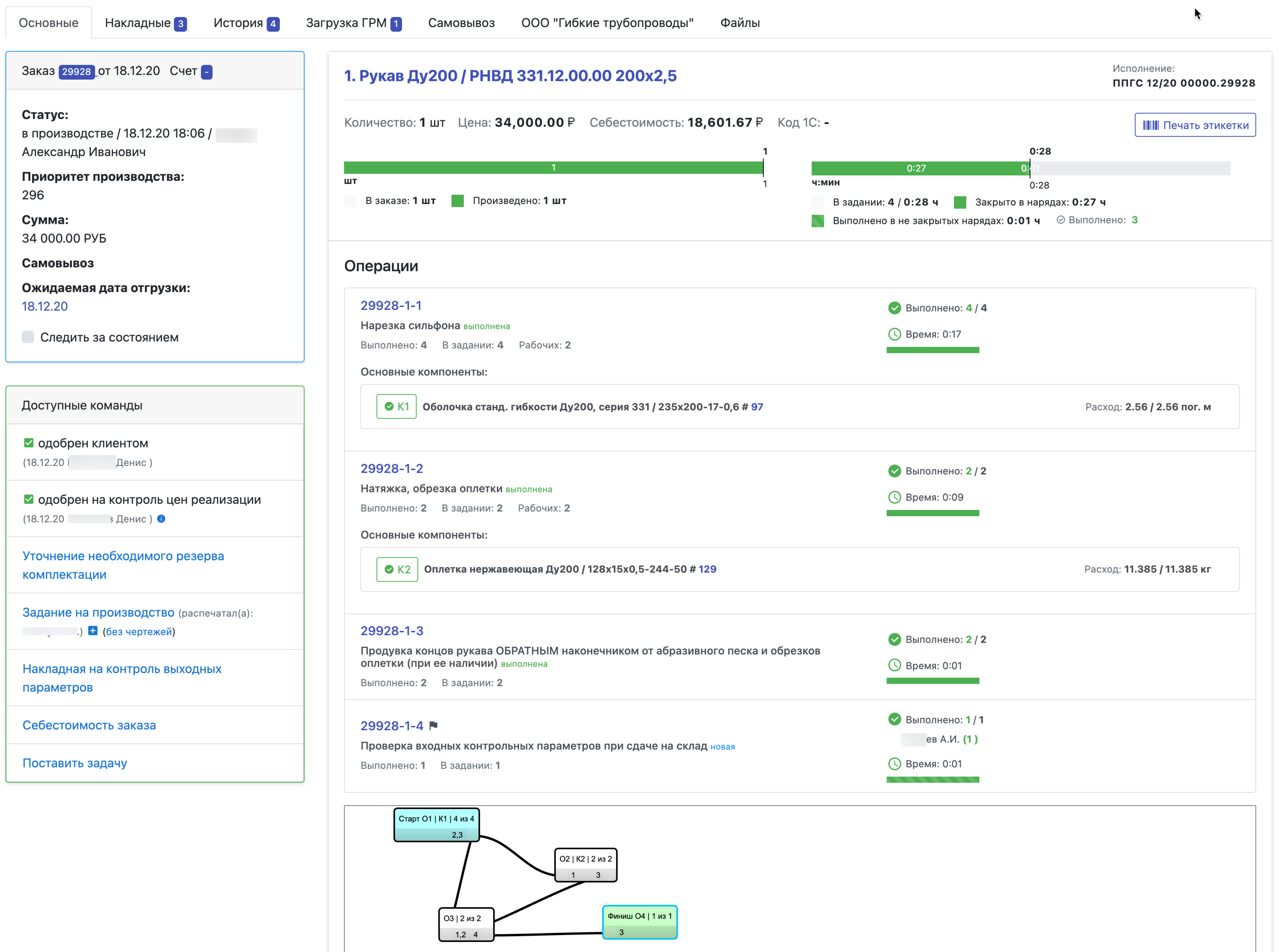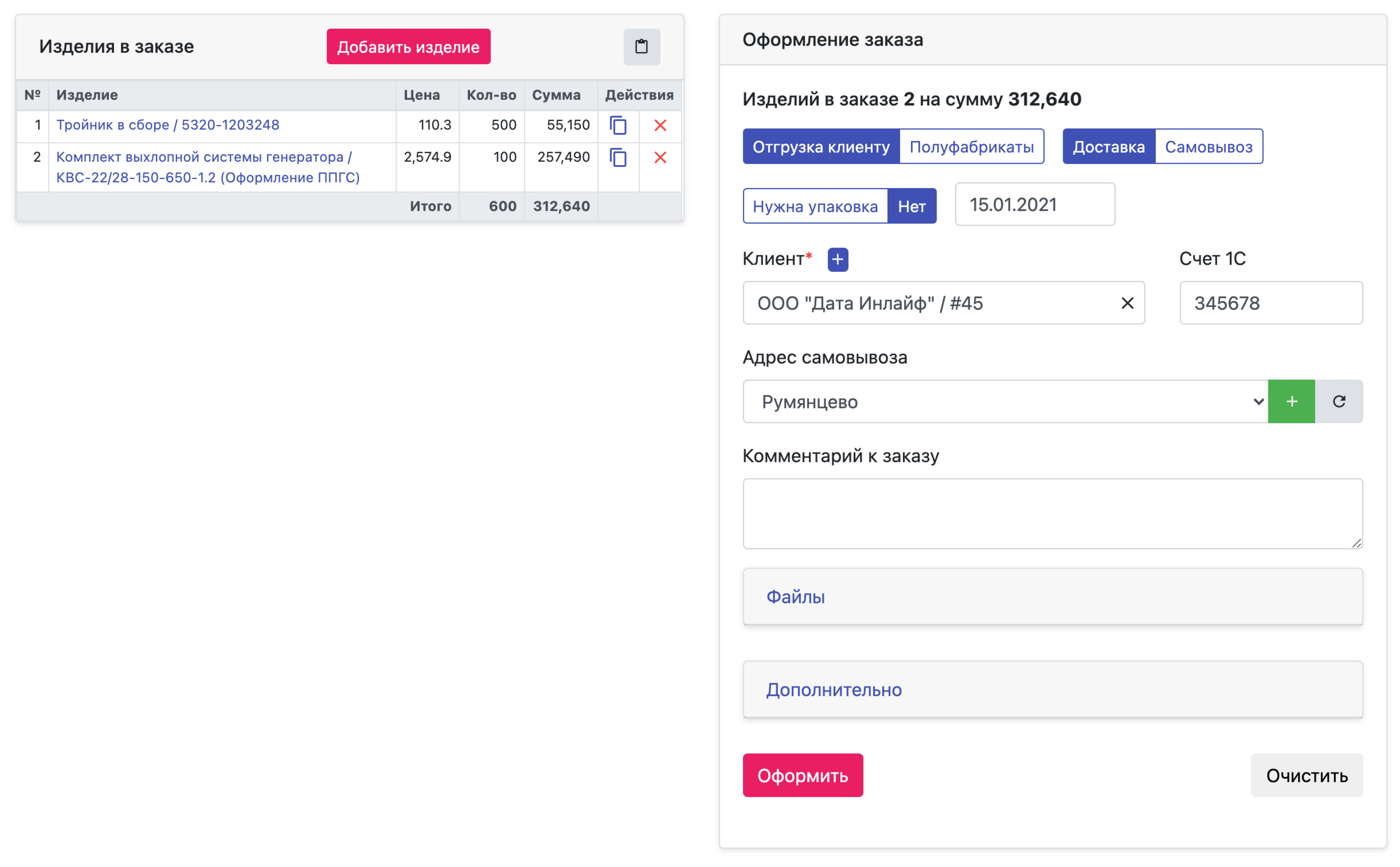 Клиенты, себестоимость, заказ клиента, доставка