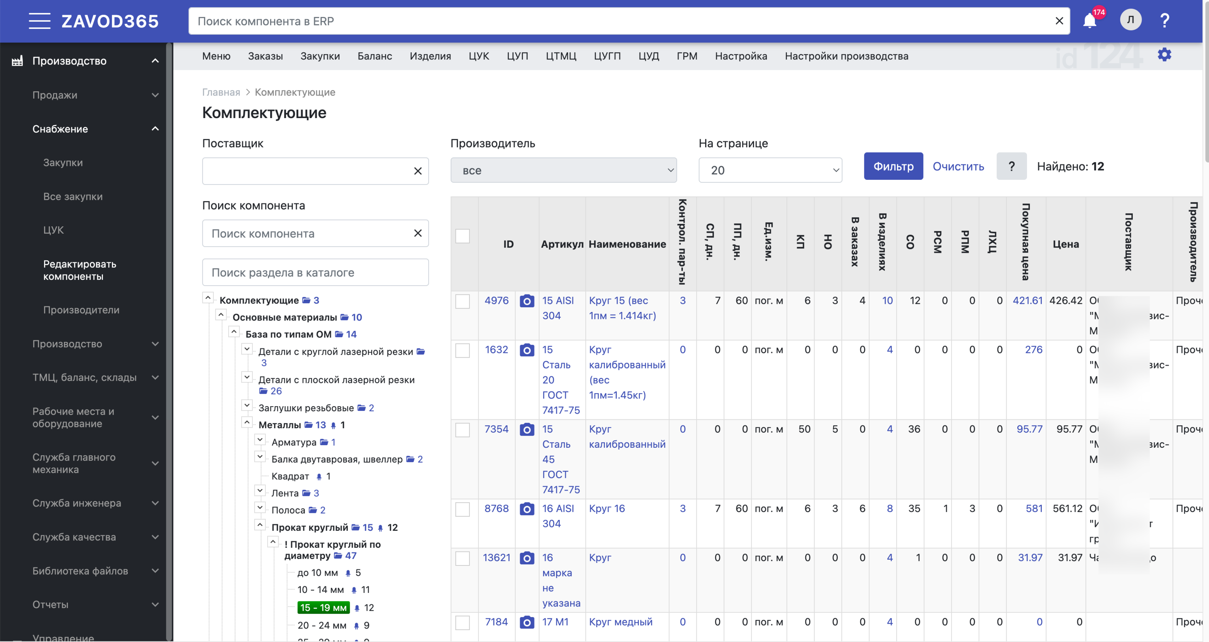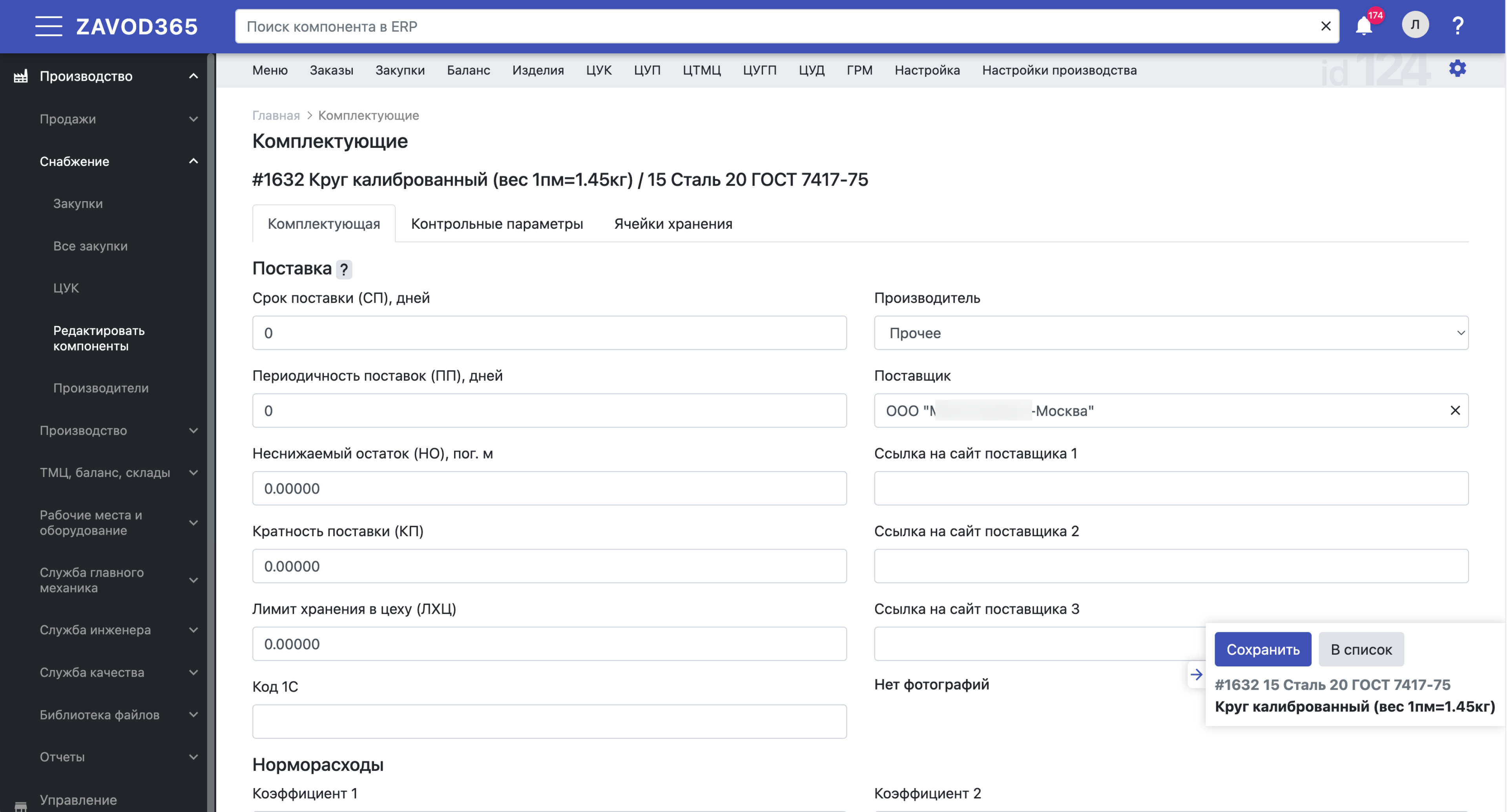 Потребность комплектующих, закупки, планирование поставок