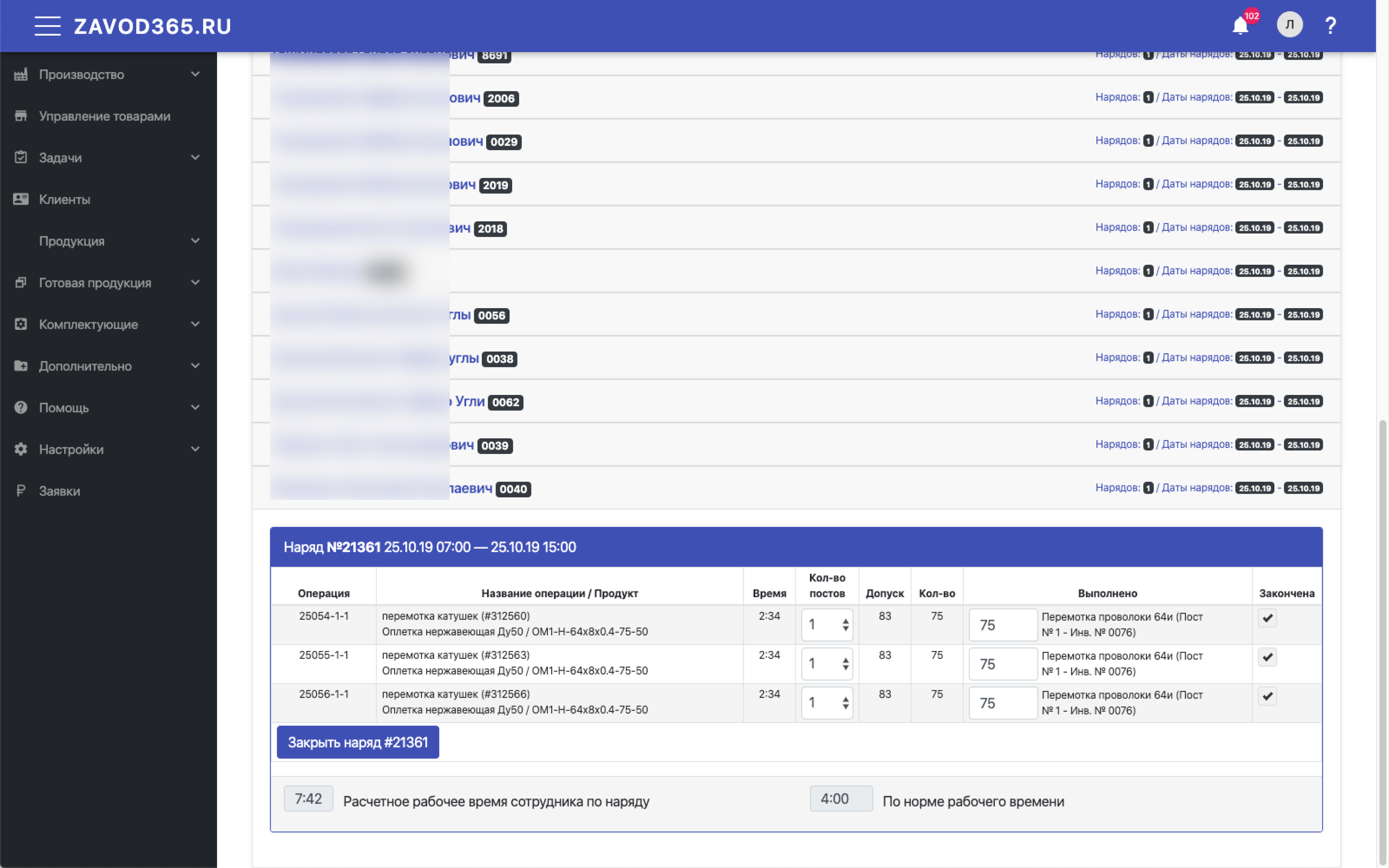 План производства, наряды, выполнение операций, фиксация простоев, премия, инструмент, спецодежда
