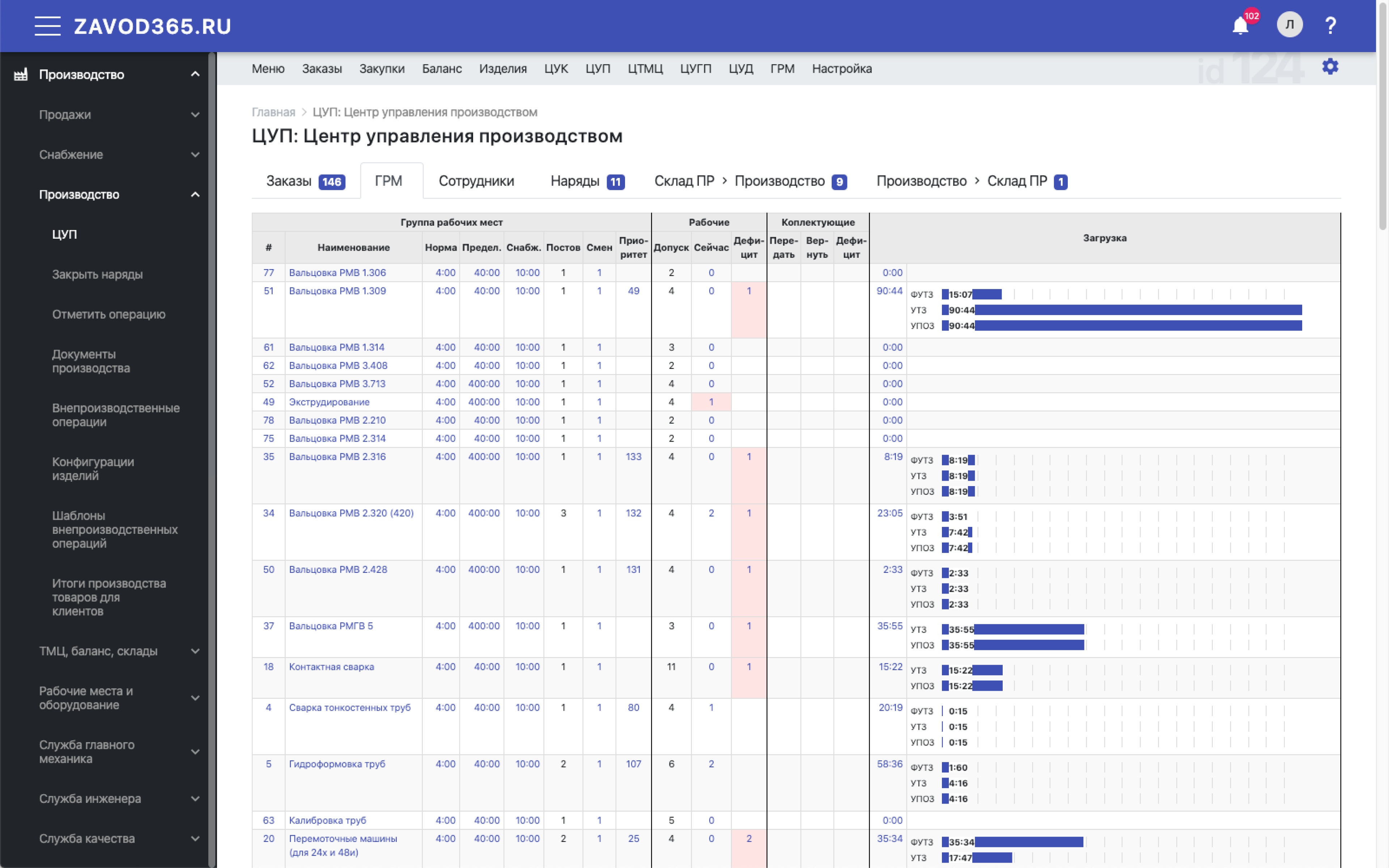 План производства, загрузка участков, календарь работ, план-факт